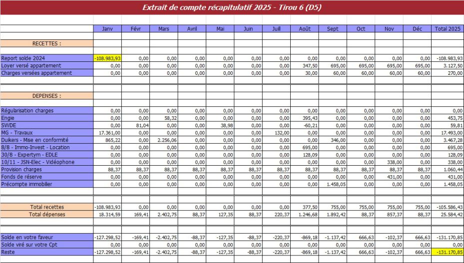 Tirou 6 (D5) - Comptabilité